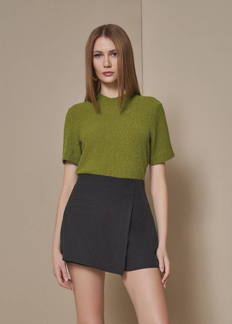 Short Saia Transpassado Em Alfaiataria Twill - Preto