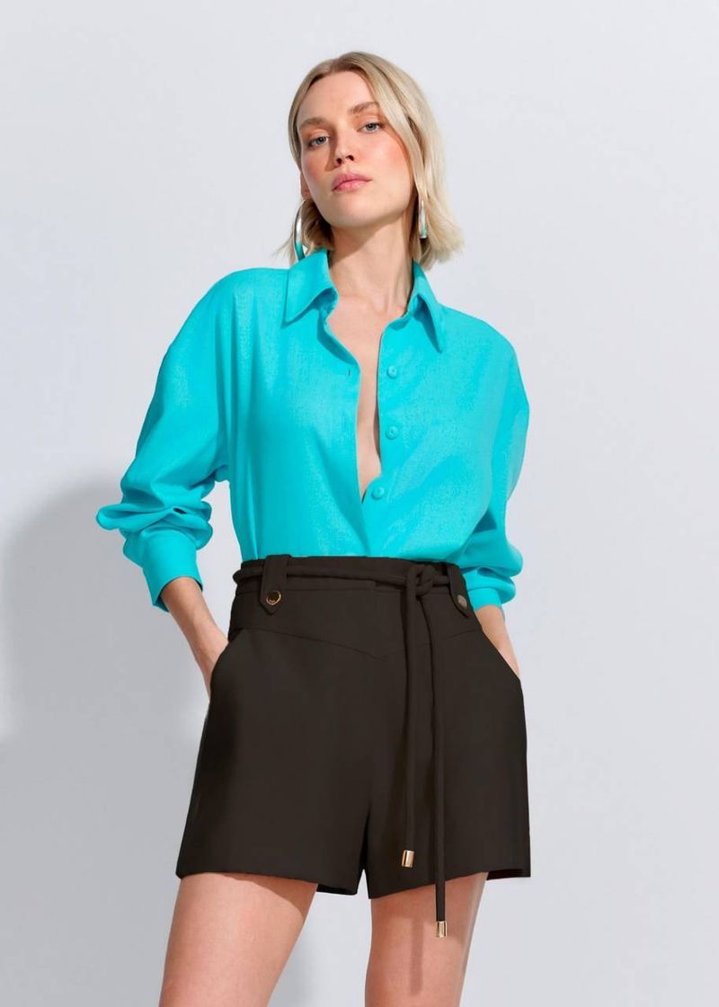 SaleShortShorts Detalhe Cós Cinto Alfaiataria Visco - Preto