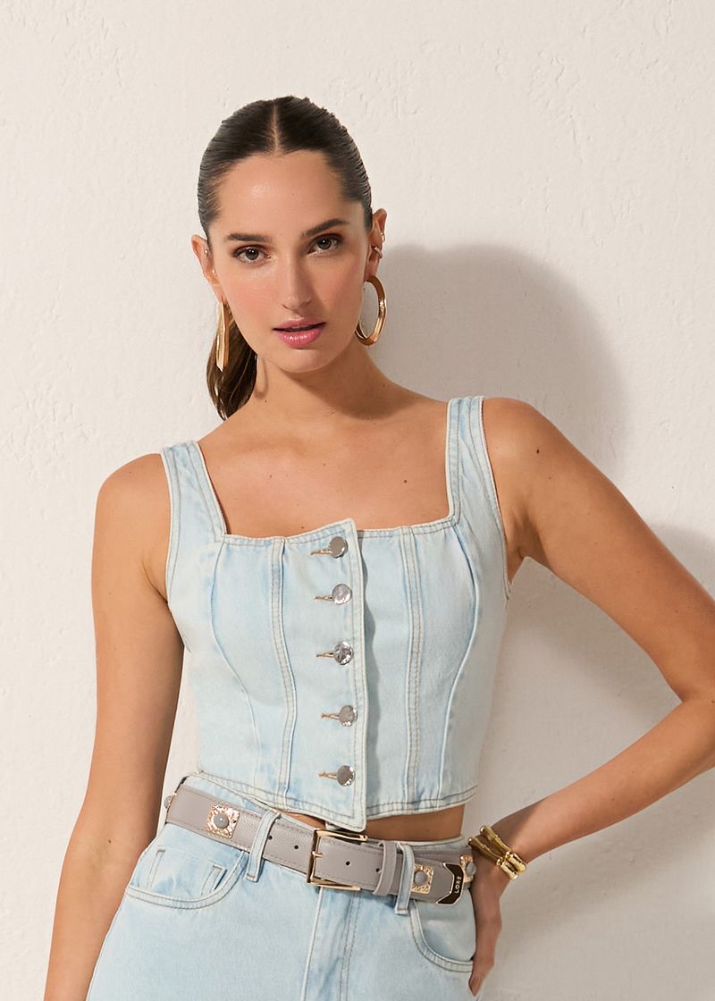 SaleJeansBlusasTop Corselet Jeans Claro - Jeans Claro