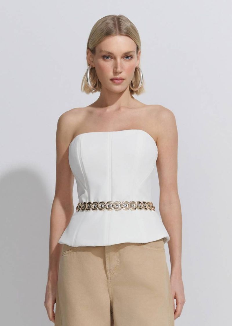 Minimalista e sofisticado, o corset em alfaiataria off white é a definição de elegância contemporânea. Sua estrutura bem marcada modela a silhueta com perfeição, valorizando a postura e trazendo imponência ao visual. O tecido encorpado confere sustentação e um caimento preciso, ideal para composições refinadas. Por ser neutro, o off white possibilita infinitas combinações, desde conjuntos monocromáticos até looks contrastantes com alfaiataria escura. Perfeito para eventos diurnos ou noturnos, ele é um curinga atemporal no closet.