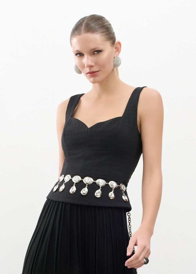 Top Jacquard Com Alças E Recortes - Preto