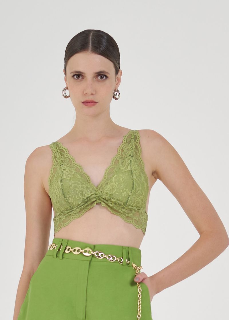 Eleve os níveis de suas produções com o top sutiã em renda. Com alças finas reguláveis para o ajuste perfeito, este top apresenta um detalhe franzido no decote, proporcionando um toque delicado e feminino. O bojo forrado oferece suporte e conforto. Ideal para ocasiões especiais ou para uso diário, este top sutiã em renda é uma escolha elegante e sensual que combina estilo e funcionalidade.