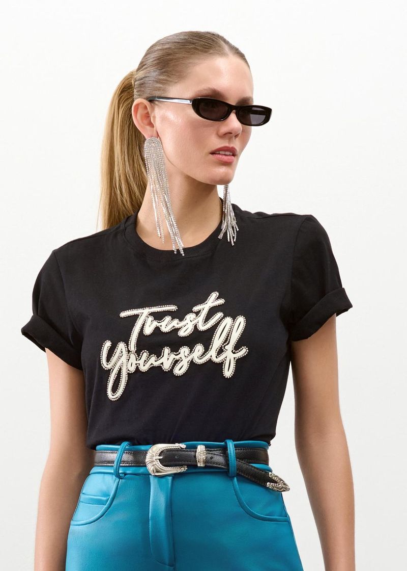 T-shirt Em Algodão Estampa Trust Yourself - Preto