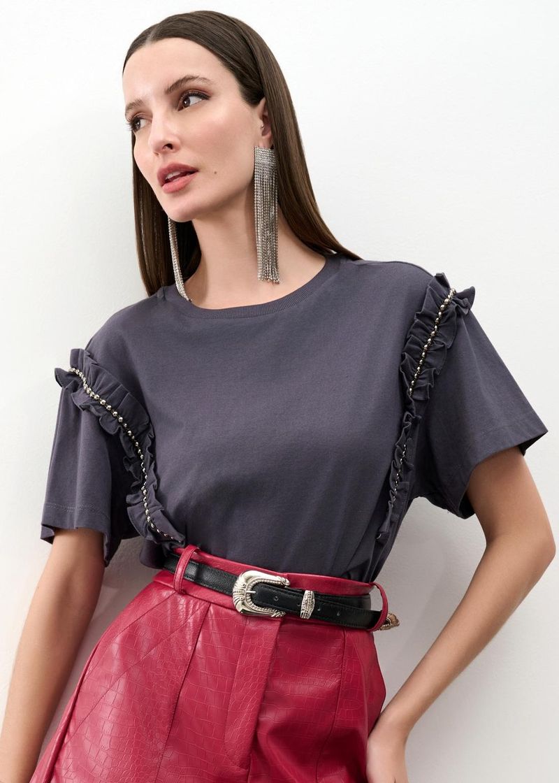 SaleBlusasT-shirt Manga Power Tachas - Chumbo