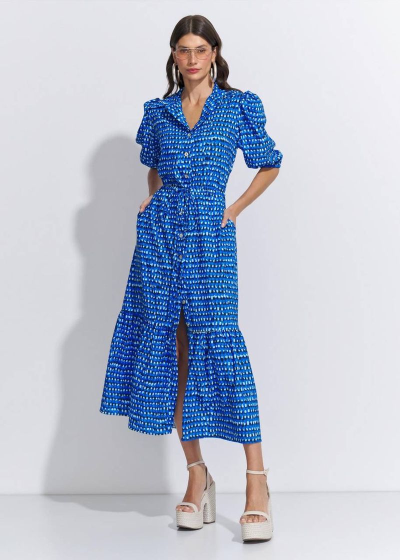 Com uma estampa vibrante e cheia de personalidade, este chemise mídi une conforto e estilo em uma só peça. A modelagem soltinha é acinturada com rolotê, garantindo um caimento impecável e ajustável. A manga bufante traz charme extra à composição, enquanto o fechamento frontal com botões permite diferentes formas de uso, seja todo fechado, entreaberto com fenda ou como sobreposição. Ideal para almoços especiais ou eventos ao ar livre, fica perfeito com sandálias de salto ou rasteiras elegantes.