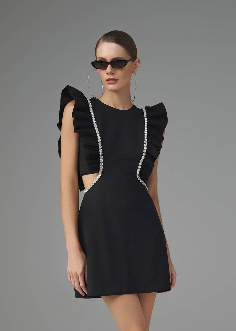 Estruturado e sofisticado, este vestido curto une a firmeza da malha encorpada com a delicadeza dos acabamentos. O babado adiciona movimento e suavidade ao design, enquanto o detalhe bordado enriquece a peça com um toque refinado. O zíper invisível traseiro proporciona um fechamento discreto e elegante. Na cor preta, o vestido se torna um ícone de sofisticação e versatilidade, perfeito para ocasiões marcantes.