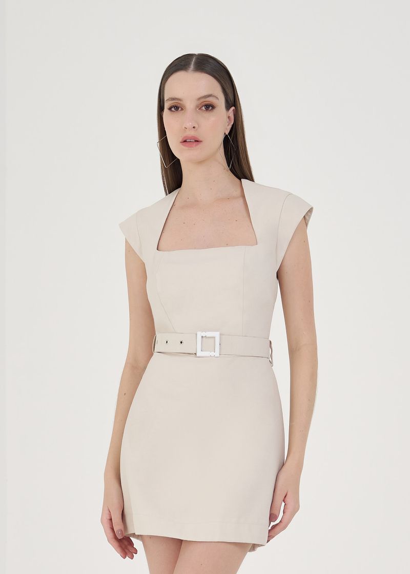 Vestido Curto Cinto Alfaiataria Visco Twill - Vanilla