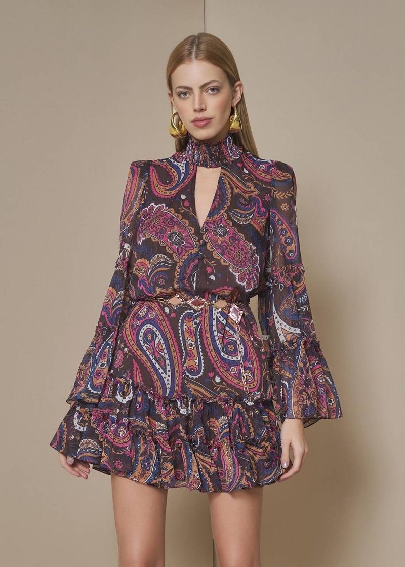 RoupasNew InAKROVestidosVestidos CurtosVestido Curto De Gola Estampado - Choco