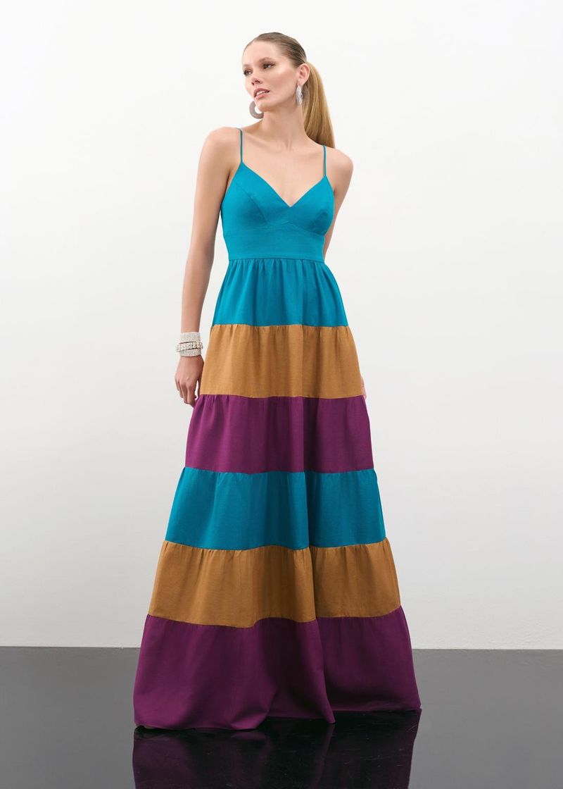 Leveza e sofisticação se encontram neste vestido longo em linho misto com cores alternadas. O decote em V valoriza a parte superior, enquanto as alças delicadas adicionam um toque sutil ao design. A combinação de recortes estratégicos e saia franzida cria movimento e uma silhueta fluida, perfeita para ocasiões especiais. O zíper invisível nas costas garante um ajuste impecável e discreto. Use com botas de cano médio e acessórios minimalistas para um visual elegante e moderno, ideal para eventos ao ar livre ou jantares despojados.