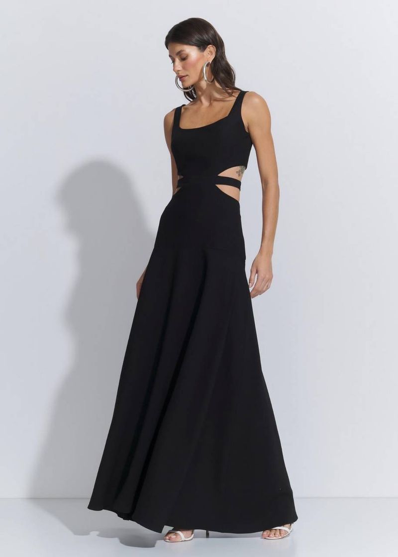 SaleVestidosVestido Longo Recortes Cintura Alfaiataria Visco - Preto