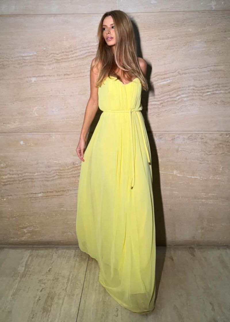 Clássico e atemporal, o tom manteiga traz uma aura refinada ao vestido, ideal para madrinhas ou convidadas de festas diurnas. A fluidez do tecido em contraste com a estrutura interna do busto cria um equilíbrio harmonioso entre conforto e elegância. Combine com salto nude e clutch de palha para uma proposta leve e chique.