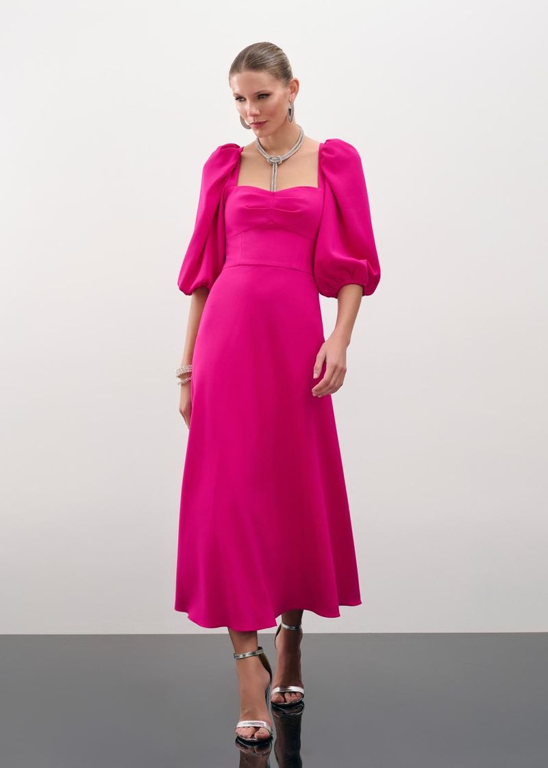 Vestido Mídi Alfaiataria Com Manga Bufante - Pink