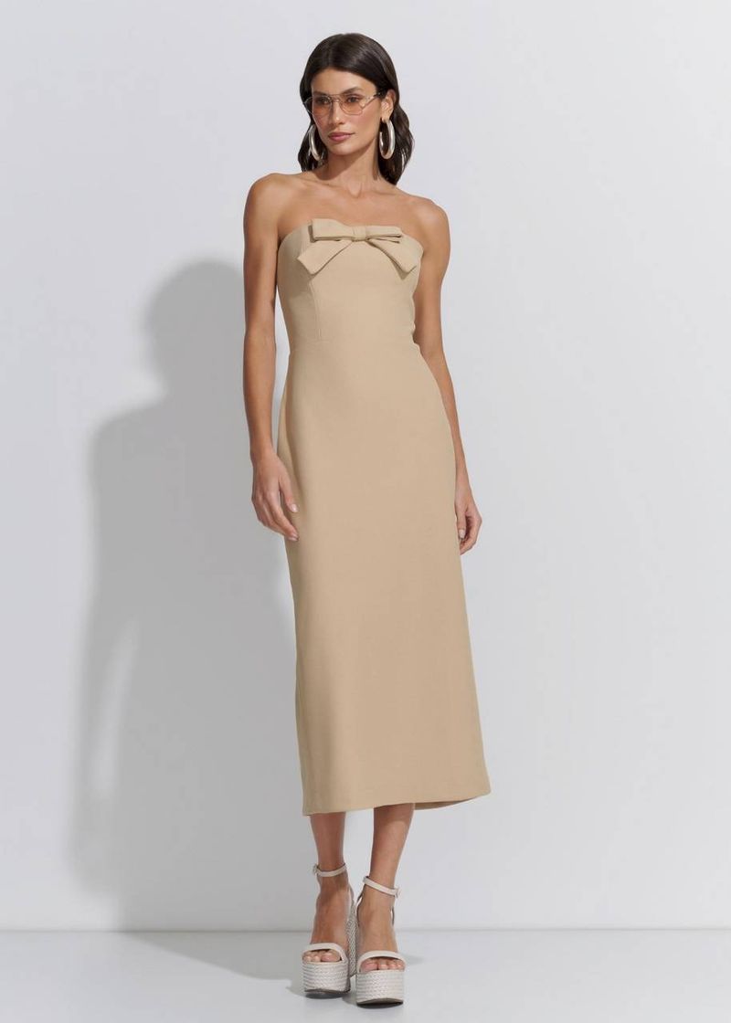 Vestido Midi Decote Laço Tressé Lux - Areia