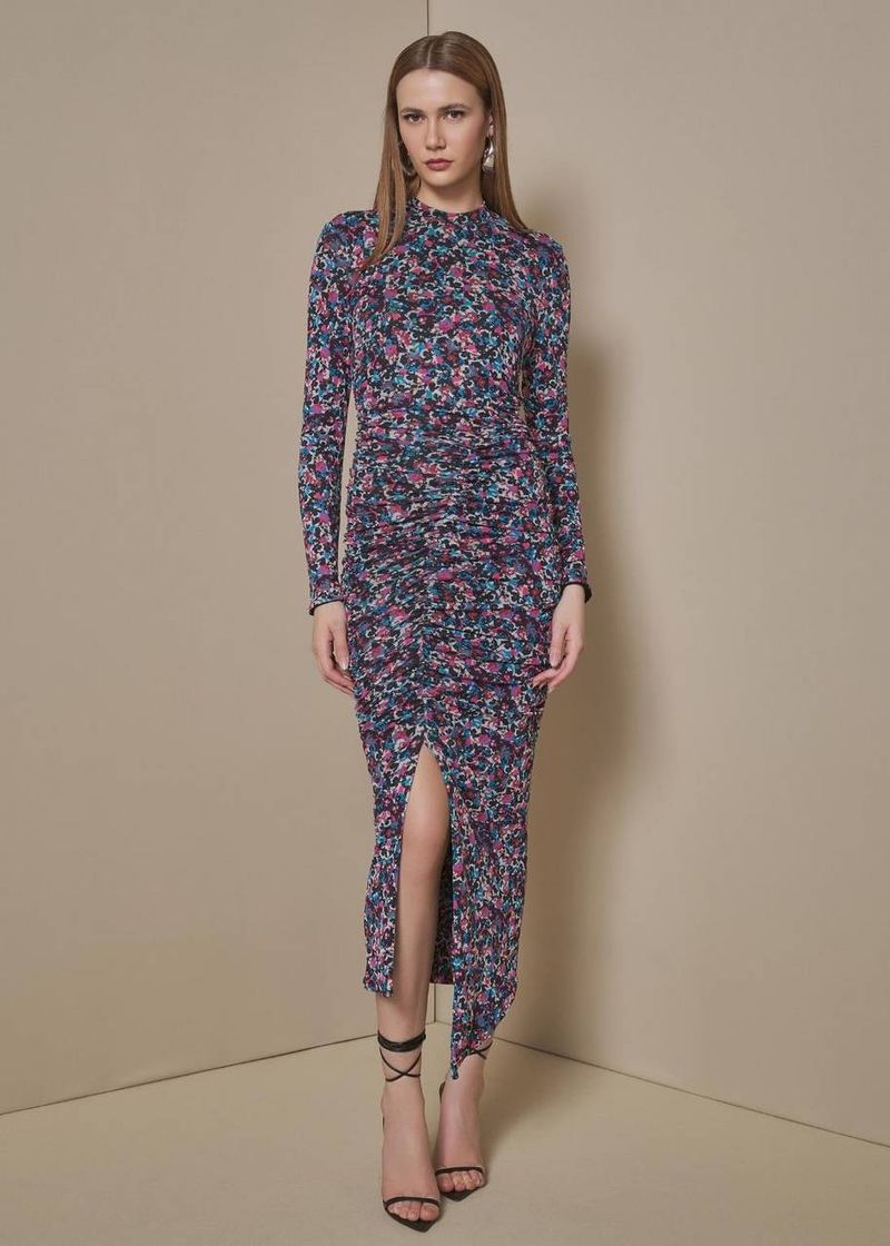 RoupasNew InAKROVestidosVestidos LongosVestido Midi Estampado Com Fenda - Preto