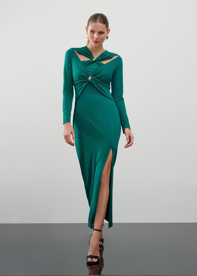 Vestido Mídi Frente Cruzada Jersey Metal - Esmeralda