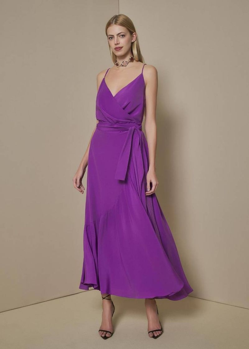 O vestido longo Uva combina leveza e personalidade em um tom marcante e sofisticado. O trespasse frontal e o franzido assimétrico realçam o movimento do tecido, enquanto a faixa ajustável valoriza a silhueta. Um visual que equilibra romantismo e modernidade, perfeito para quem busca elegância com um toque de cor e originalidade.